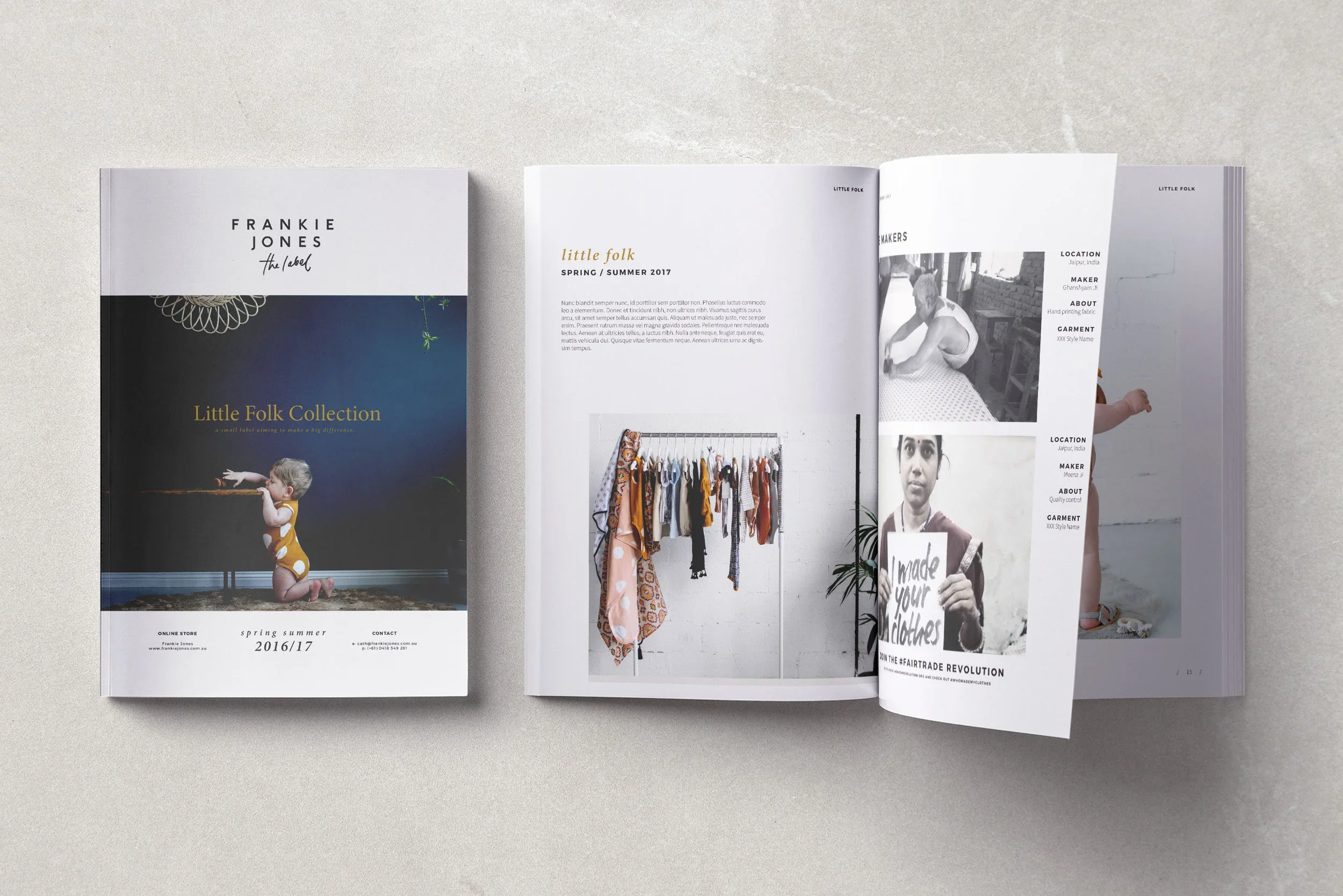Frankie Jones required a premium branding solution that accurately represented not only their business, but also their brand beliefs and values. The visual language created required flexibility to deliver a strong brand presence across multiple design applications, including a branding suite, range books, social media, and packaging. Design of children’s yardage prints.